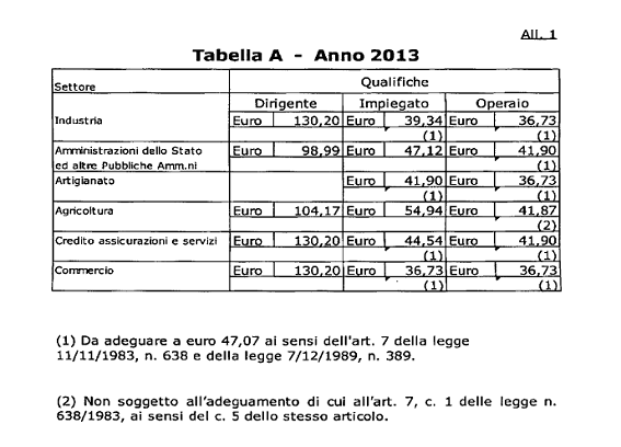 1. Minimali di retribuzione giornaliera per la generalità dei lavoratori
