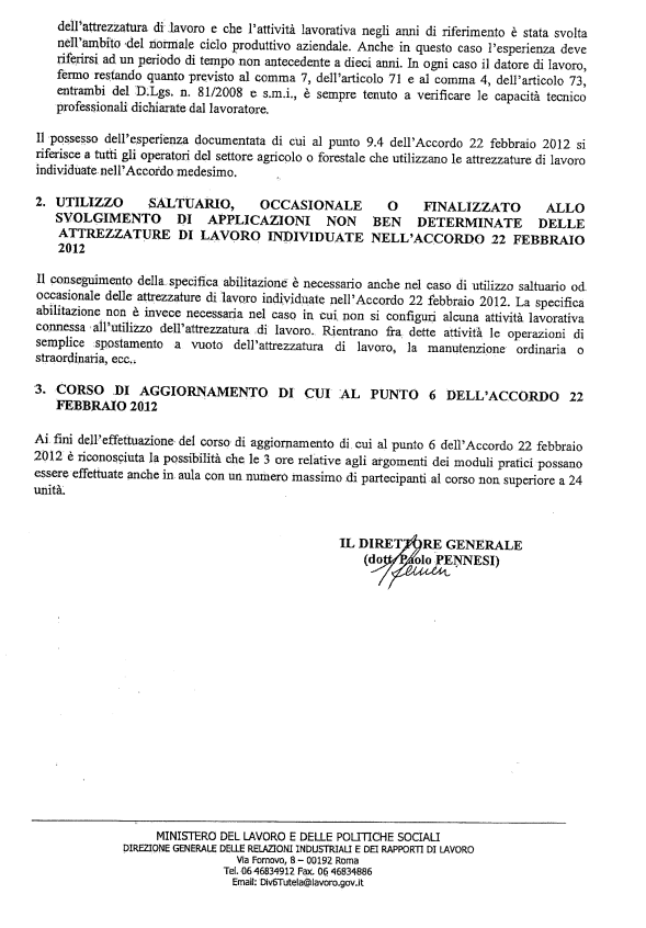 – Sicurezza – Formazione per l’utilizzo di particolari attrezzature – Circolare