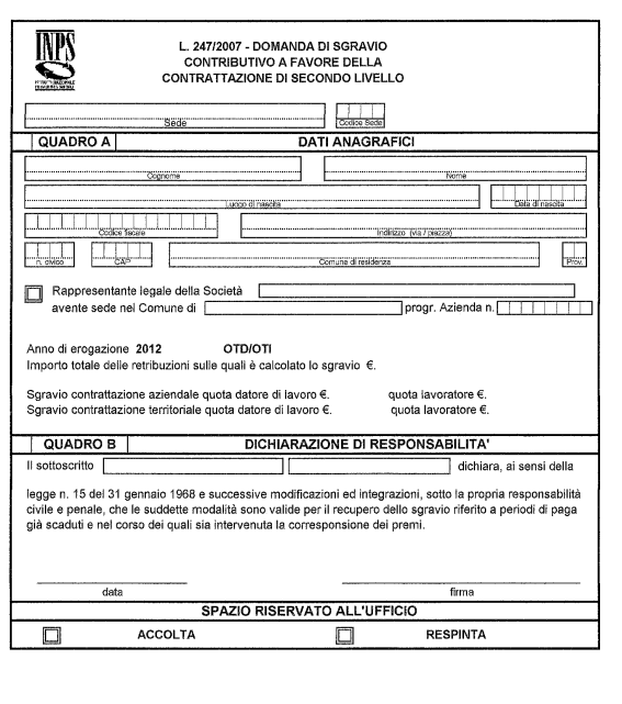 Oggetto: Anno 2012. Sgravio contributivo a favore della contrattazione di secondo livello. Decreto interministeriale 27 dicembre 2012. Modalità operative per la fruizione del beneficio contributivo.