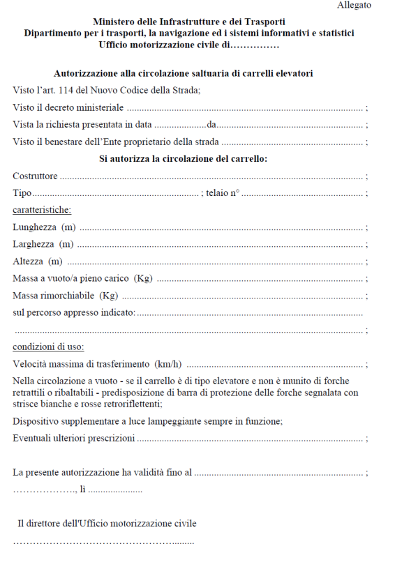 noto, la circolazione saltuaria dei carrelli elevatori era già consentita tramite