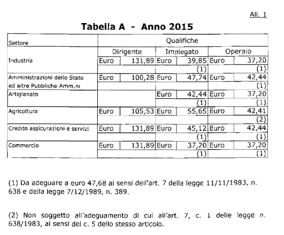 le retribuzioni imponibili in vigore all’ 1.1.2015 e quelle assoggettate a