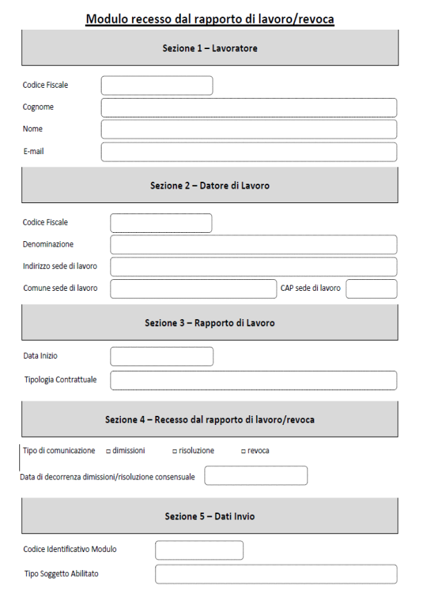 MODULO RECESSO DAL RAPPORTO DI LAVORO/REVOCA.