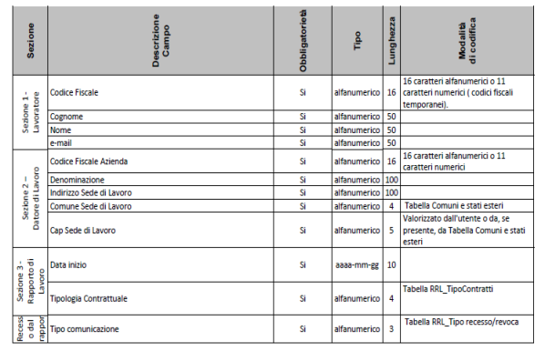 in vigore del sistema delle comunicazioni obbligatorie); nel