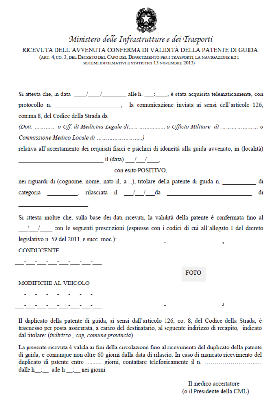 dell'avvenuta conferma di validita' della patente di guida, ai sensi